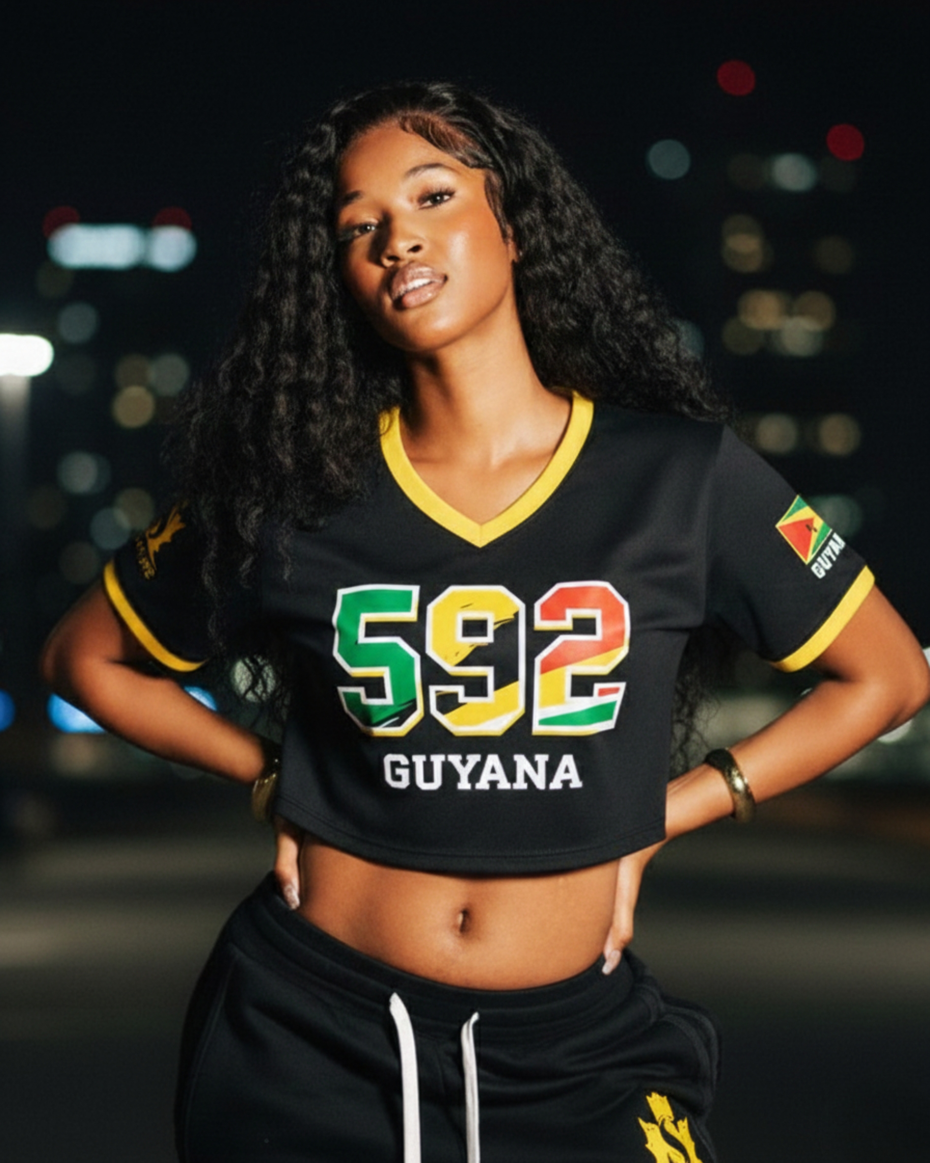 Elevate your streetwear game with the Signature Moov Guyana 592 Crop Top. Designed for the modern Guyanese woman who wears her heritage with pride, this top combines cultural identity with high-end athleisure.